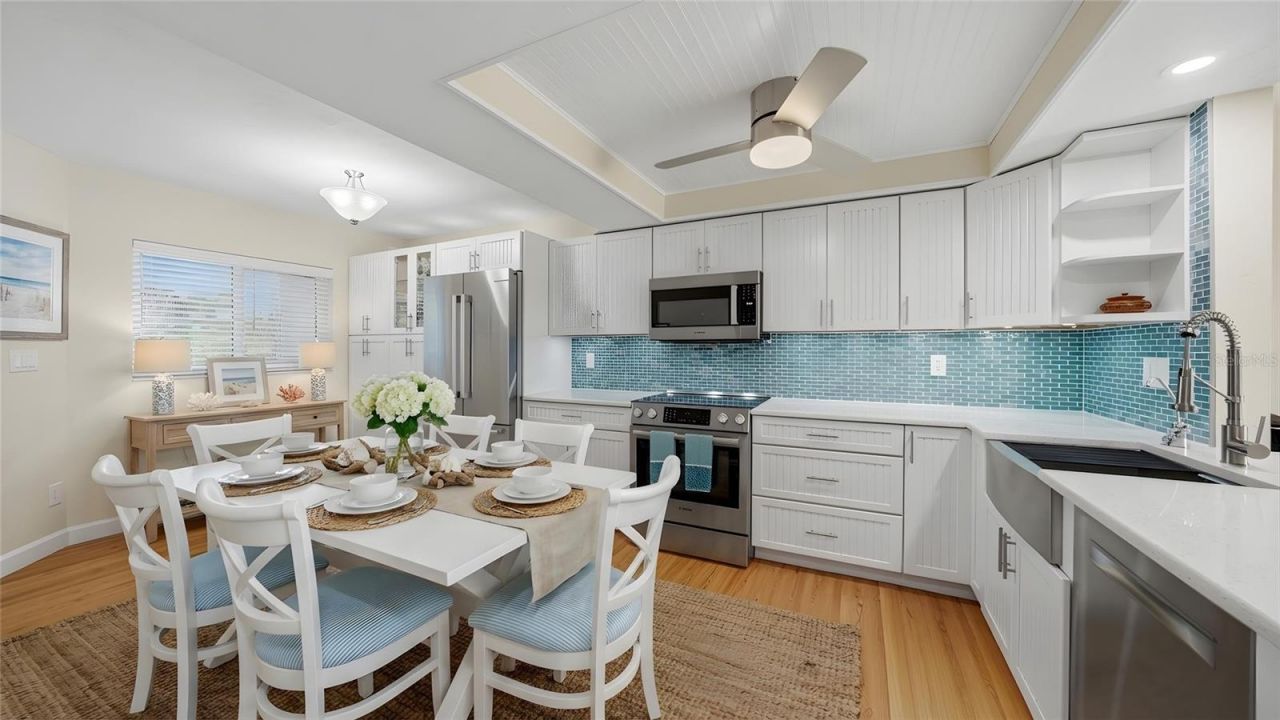 One or more photo(s) has been virtually staged. You are cordially invited to explore the ultimate in waterfront luxury living in this fully remodeled gorgeous masterpiece. Wake up each and every morning to the breath-taking direct sunrises from the privacy of your eastern-facing enclosed sunroom complete with remote-controlled Levolor blinds. In addition to the bright and airy spaces, all the sliding doors are PGT Hurricane multi-directional designs for effortless indoor-outdoor living and the windows are PGT Hurricane rated backed by a 10-year extended parts warranty. Other distinctive comforts include a space-saving Tankless Hot Water Heater, High-efficiency LG ThinQ Laundry System and dual remote controlled ceiling fans throughout the home. The Sellers have paid exquisite attention to detail in every way possible featuring a chef's-inspired luxurious bright kitchen with dual pantries providing massive, unparalleled storage enhanced by the beautifully inspired tiled backsplash. The full suite of Bosch Stainless Steel Appliances, convection oven, farmhouse sink and coordinated corner cabinetry details are simply top of the line amenities. Entertaining and gathering around the large table and chairs along with counter chairs provide ample seating for guests to enjoy and sharing in the meal preparations. To complete this list of upgrades, the two bathrooms are exquisitely appointed with upgraded fixtures, stunning tiling and unexpected modern Bidets in each bathroom! The Primary ensuite features a gorgeous tub/shower combination and the secondary beautiful bathroom offers a walk-in shower and oversized three-door vanity, providing for maximum storage. You will not be disappointed exploring this move-in ready maintenance-free condo ideal for year-round living, weekend getaways or fun-filled Florida vacations. The entire community has access to a Swimming Pool and Spa, Tennis Court, Dock and Boat Ramp for recreation, boating and fishing along the Intracoastal Waterway. The complex provides a gated entry system for privacy. Assigned Parking Under the building protects your vehicle from the elements as well as ample guest parking is provided. The Condo fee also covers all Common Areas, Exterior Maintenance, Flood Insurance and the individual contents insurance is approximately $1100 a year. The rental policy allows for monthly rental income to offset any expenses. You are hereby selected to experience and enjoy this spectacular waterfront oasis!