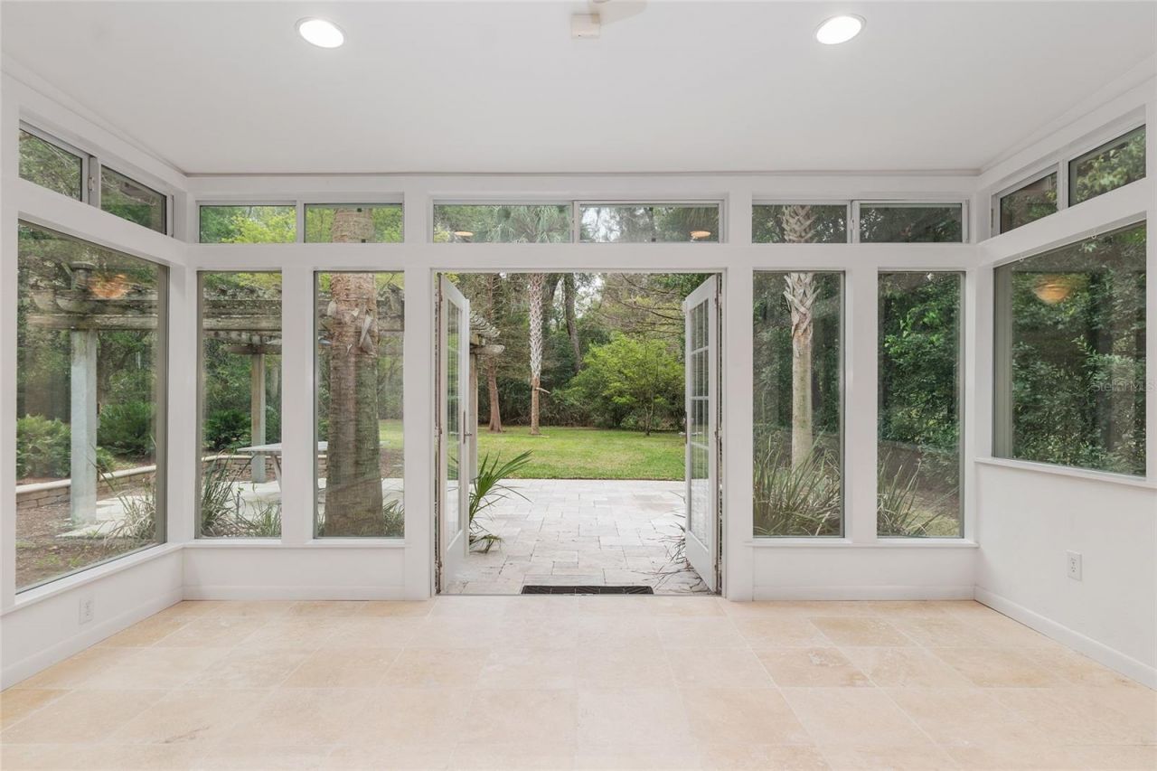 Welcome home to Idlywild. This well maintained 3-bedroom, 2-bathroom home offers 2,187 square feet of thoughtfully designed living space on .63 acres of meticulously manicured grounds. There is a 100-acre preserve behind the property ensuring your privacy and peaceful views for years to come. Step inside to a generous living and dining room featuring terrazzo floors and a wood-burning fireplace. The kitchen offers plenty of counter space and cabinetry, SS appliances, double sink, under cabinet lighting, closet pantry and spice closet. Step down to a bonus room/den/office with French doors that open to the side yard, plus convenient garage access. A large laundry room with exterior access adds functionality. Turn left from the living room and discover your glass-enclosed sun room with travertine floors, overlooking a travertine patio with arbor and manicured backyard. Go up three steps where the three bedrooms are situated, in their own wing. Two bedrooms share a hall bath featuring a walk-in shower and a skylight. The primary bedroom offers built-in closets and storage while its bath includes a tub/shower combination. Additional highlights include an oversized 2-car garage, 8-zone irrigation system, outdoor lighting and gutters. Located near Serenola Forest Preserve - Idylwild Trailhead, easy walk to Idylwild Elementary School. Easy access to I-75, Williston, Archer, SW 34th Street nd US 441. The VA, UF, UF Shands, shopping and restaurants near by.